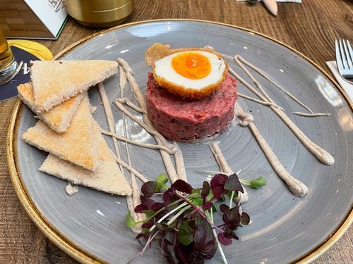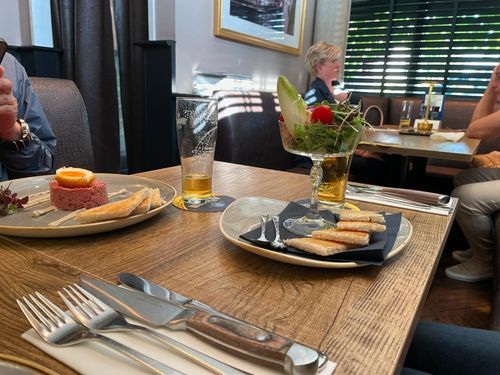 ホテルのレストランで、美味しいビールと美味しい料理でリラックスタイムです。