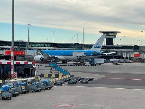 オランダ、アムステルダムスキポール空港でレンタカーを返却してからチェックイン。これからパリに向かいます。