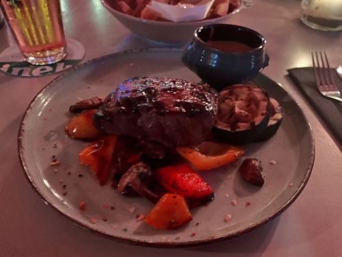 今夜のディナーは、宿泊ホテルの隣にあるBarへ。