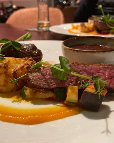 鴨肉のステーキとタルトタタンがとても美味しくて、ビールが進みます。