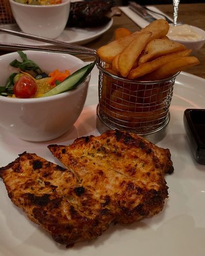 ホテルのレストランで、美味しいビールと、美味しい食事を頂きます。