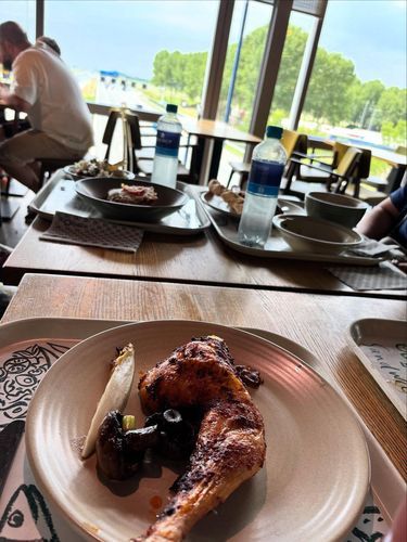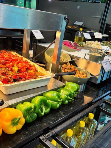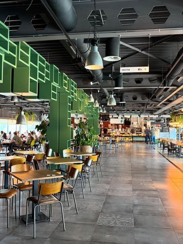 アムステルダムの高級店、MENNO KROON の見学を終えて、高速道路のサービスエリアのビュッフェレストランでランチ中です。