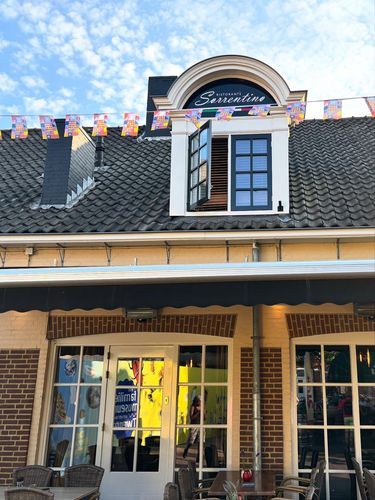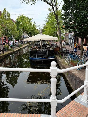 今日の宿泊ホテルがある、アールスメールに戻り、ホテルのレストランでディナーです。今日も天気がいいので、アウトサイドでの食事です。