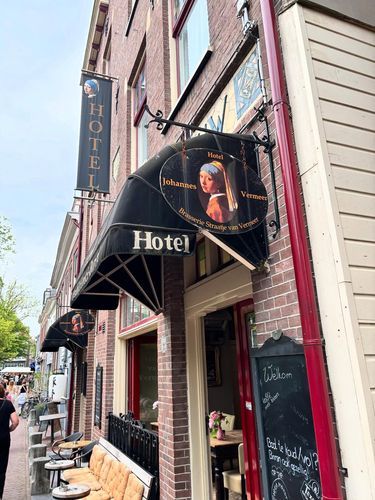 この広場沿いの宿屋がフェルメールの生家で、今はカフェになっています。
