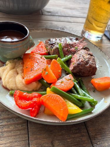 今夜も宿泊ホテルのレストランで美味しいビールと食事を頂きます。
