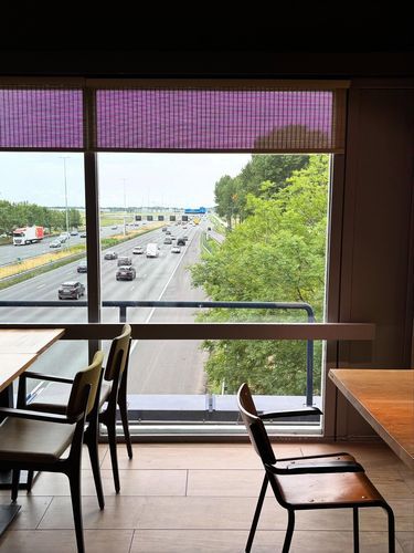 高速道路を跨いでいる建物が面白いですね。ちなみにこのレストランのトイレは有料です。