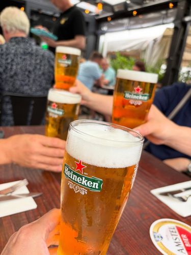 第40回オランダ・ベルギー仕入れツアー、3日目です。 今日の宿泊ホテルのレストランでディナーです。今日も天気がとても良いので、アウトサイドで食事をします。 まずはドイツビールで乾杯です。 夜8時とは思えない明るさですが、気持ちのいい風を感じながら、美味しいお食事をいただいています。