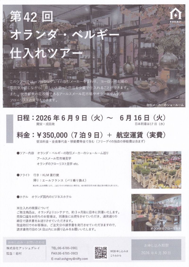 第42回オランダ・ベルギー仕入れツアーのご案内です。
